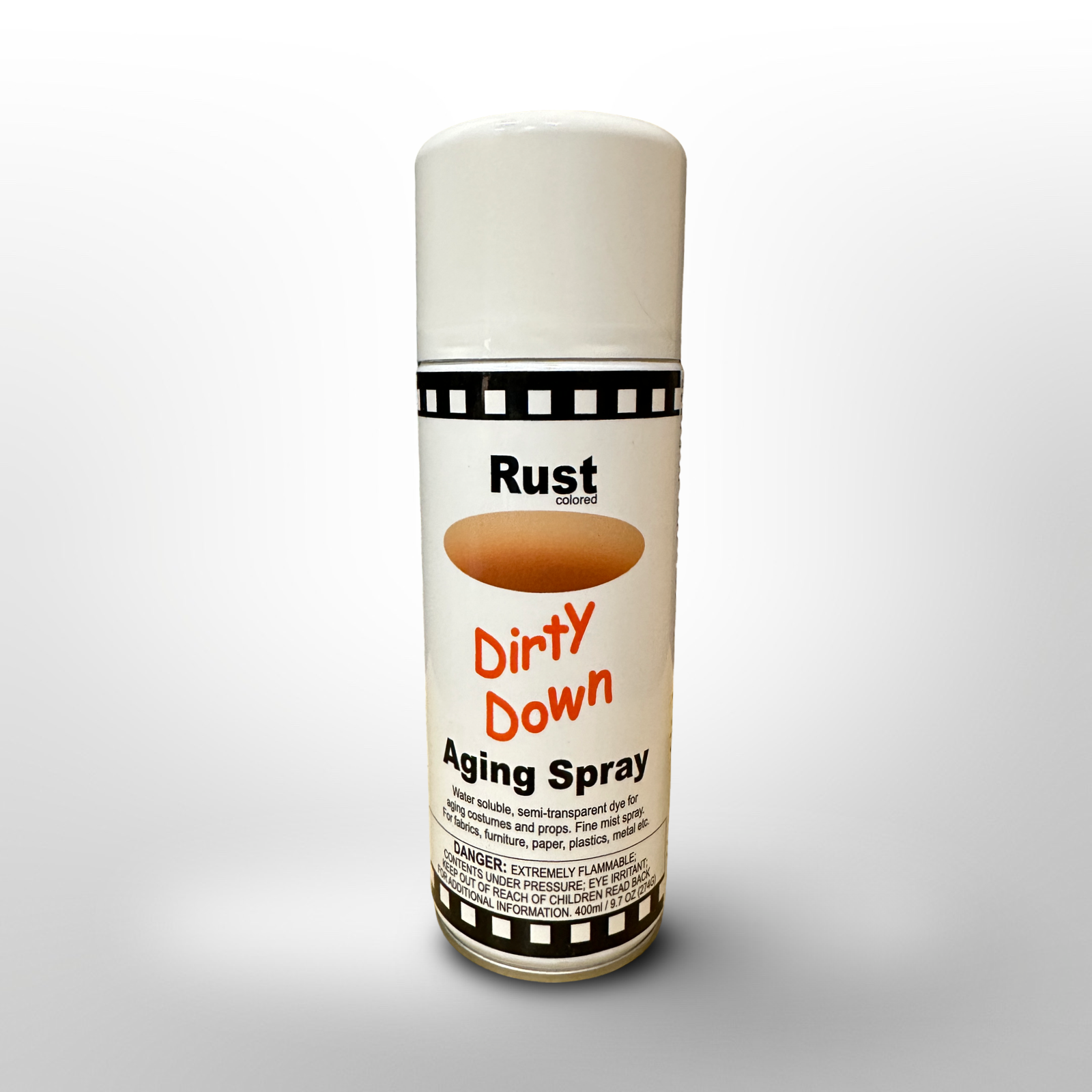 Rust ageing spray is a fine mist semi-transparent spray dye that makes things look dirty and old, or aged. Dirty rusty red colour. The spray is water soluble and can be smeared and reworked by wetting with water. Fast drying. Ozone friendly.